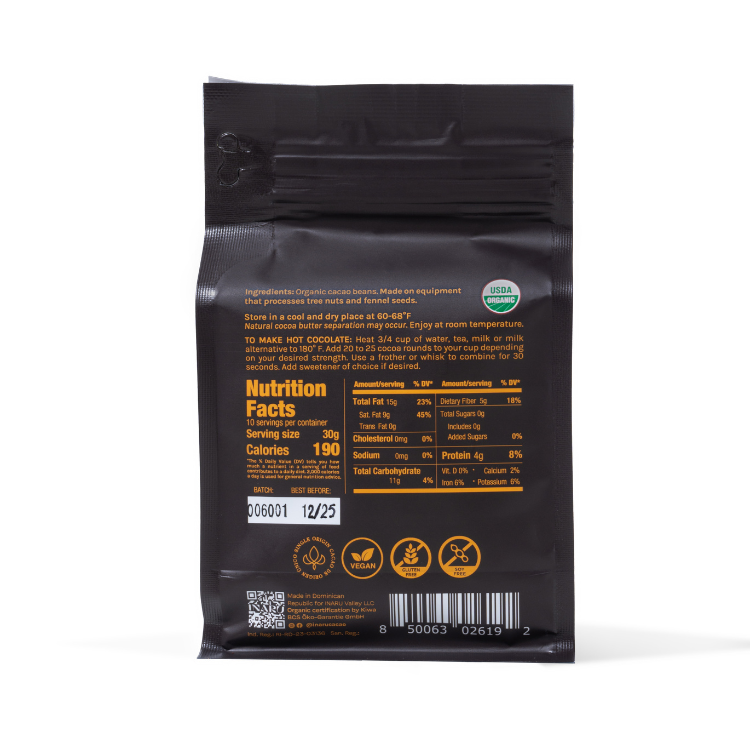 최상의 재료로 만들어진 초콜릿 라운드는 커버춰 형식으로 작은 동그라미 모양의 칩으로 되어있습니다. 진하고 풍부한 핫초콜릿을 만들거나, 좋아하는 레시피에 고급스러움을 더하거나 휴대하기 편해 간식으로도 드실 수 있습니다.