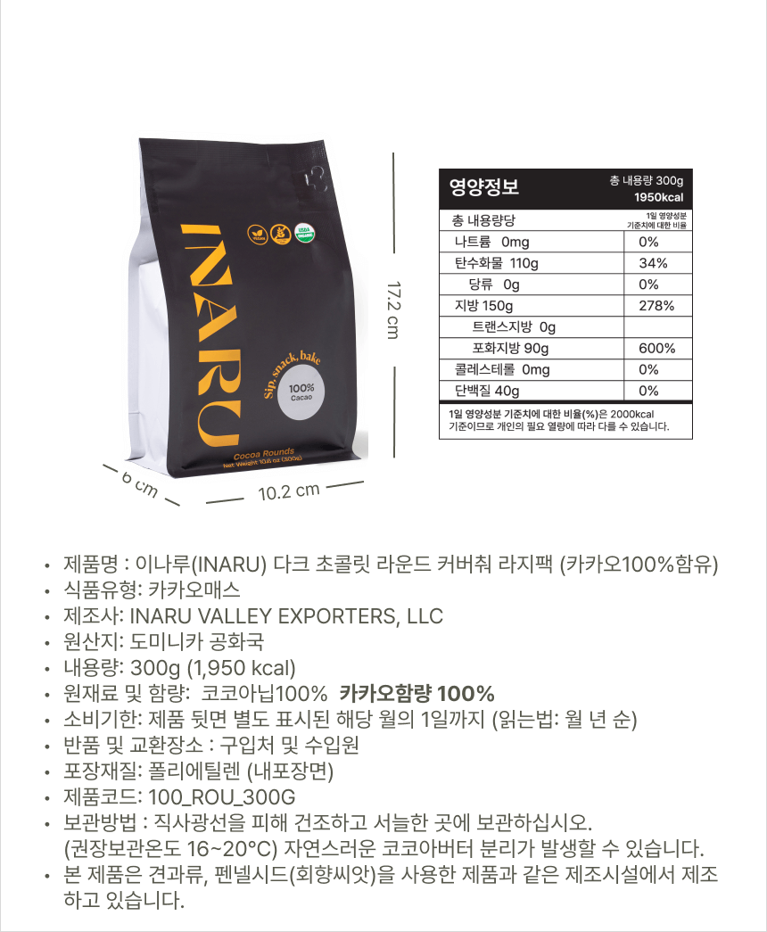 깊고 강렬한 쌉쌀함이 특징인 이나루 100% 커버춰 초콜릿은 진정한 카카오 본연의 맛을 탐구하고자 하는 초콜릿 애호가들에게 완벽한 선택입니다. 어떠한 첨가물 없이 순수한 카카오만으로 만들어져, 초콜릿의 본질을 극대화한 경험을 제공합니다.