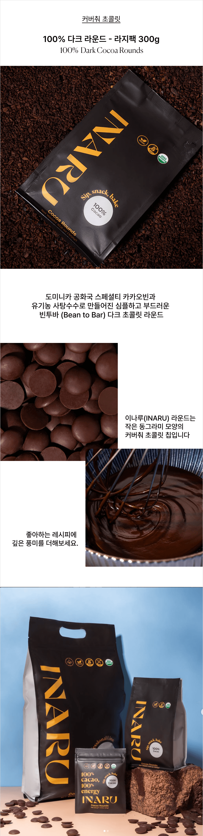 100% 다크 초콜릿 라운드 - 라지팩 300g