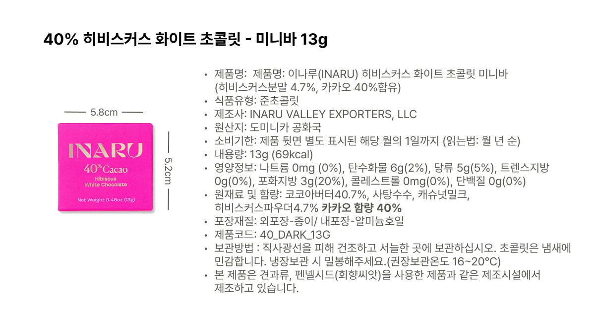 40% 히비스커스 화이트 초콜릿 - 미니바 13g